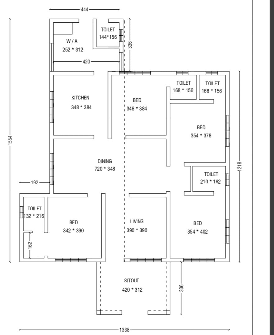 On the roof top is simple terrace. As if to make up to you for the lack of roofing, simple with plain metal stripes are given. The single and only storey of this house covers an area of 1950 square feet. You’ll also notice how incredibly plain the walls surrounding the house are. However, their plainness serve to accentuate the beauty found in the rest of the house. This house is an example of 4 bedroom house plan with attached bath facility. What’s more, it’ll provide you much needed comfort as with 4 bedrooms with attached bathrooms and every other facility expected in a home.