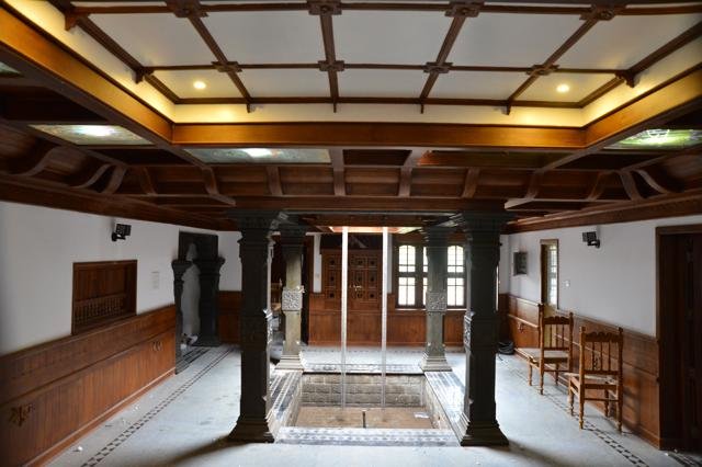 Separate work area and dining area of nadumuttam and teak interior, modular kitchen, in the villa of all modern amenities.The, was built with the old tradition of style.