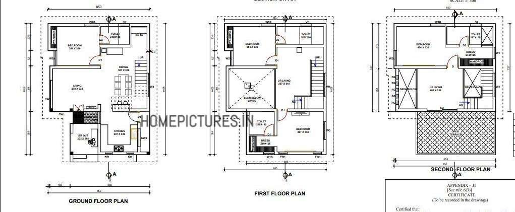 There is a beautiful car porch, sit out, living room, dining space, kitchen, 2 upper living area, 4 bedroom with attached bathroom and open terrace in this house which has an area of 2650 square feet. The family living area and the kitchen are designed in the open style. A working kitchen too has been arranged here. The 4 bedrooms in the house are designed in unique themes, There are upper living area, 2 bedroom with attached bathroom in first floor and 1 bedroom with attached bathroom and open terrace in second floor. Want try this elevation on your new home ? Then contact designer through the information given below.