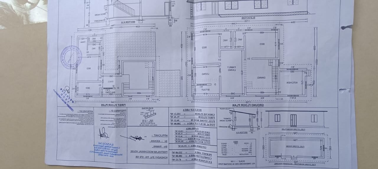 Within its 2652 sq ft footprint, Ashokan’s residence at Thrissur, is meticulously designed to accommodate four bedrooms a functional kitchen, and a dedicated work area. The thoughtfully planned layout includes two bedrooms on the ground floor for added convenience, while the upper floor houses two more bedrooms, ensuring a harmonious balance of space and privacy.